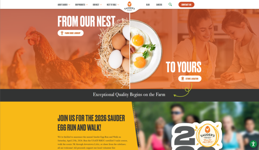 Sauder’s Eggs works as an extension of local family farms to sell and market pasture-raised eggs produced under Certified Humane standards. This ensures hens have consistent outdoor access for natural movement and foraging. Each farm follows structured care practices that combine a vegetarian feed with outdoor grazing, which supports balanced nutrition and reliable egg quality.